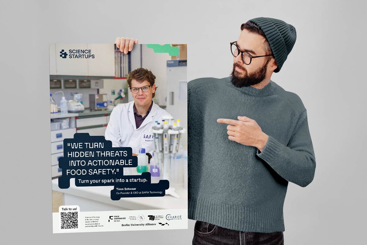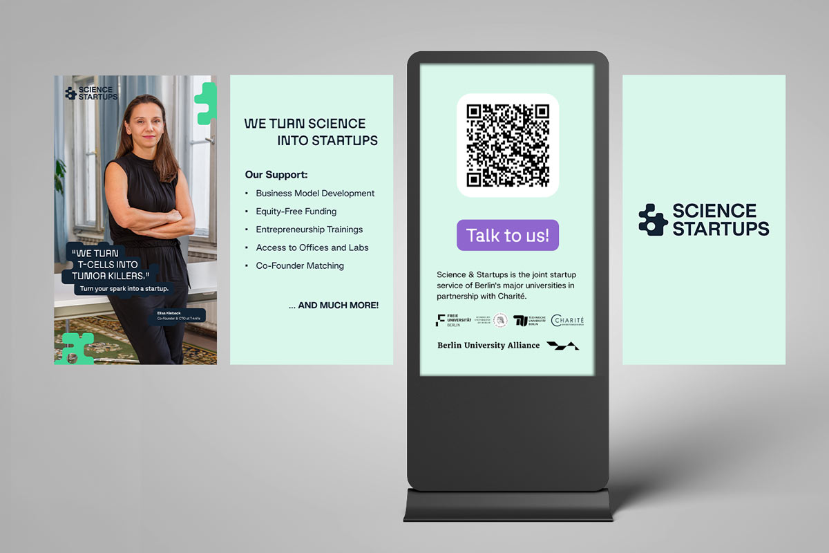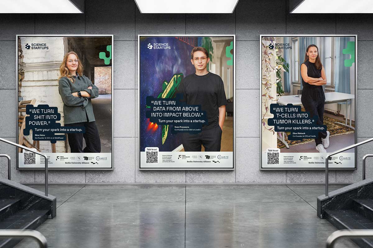 "We Turn" is a multi-channel campaign for Science & Startups, encouraging students, researchers, and alumni to turn scientific ideas into startups. Building on the existing corporate identity, I developed the visual concept, photography, and graphic design across all campaign materials.